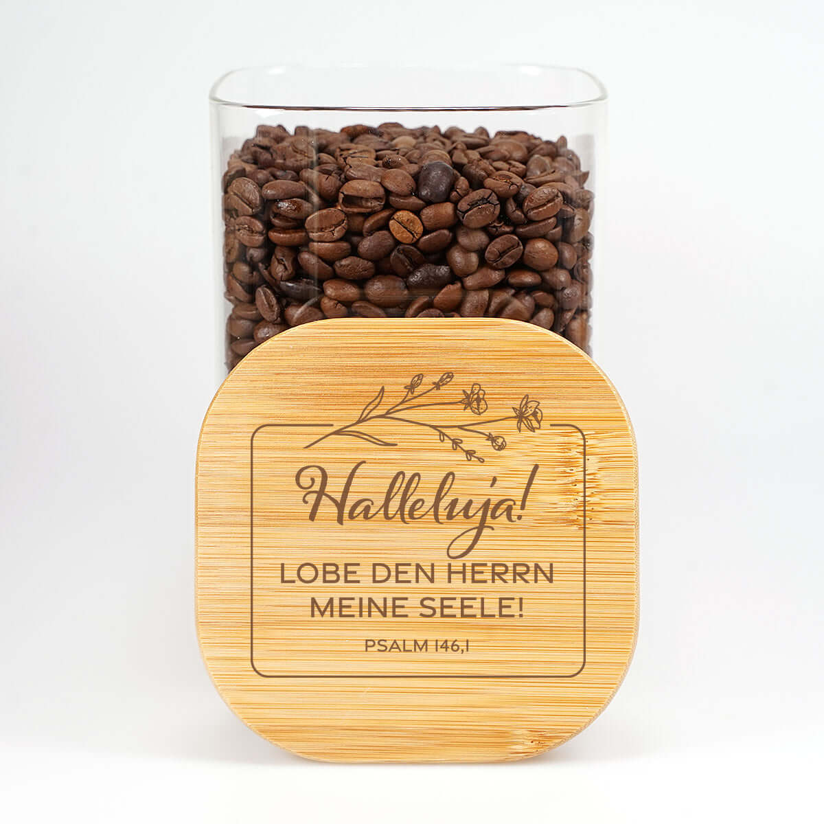 Suchst du nach einem Geschenk, das sowohl praktisch als auch zutiefst persönlich ist? Unser hochwertiges Vorratsglas mit Bambus-Deckel und Bibelvers-Gravur ist die perfekte Wahl. Ob für einen lieben Menschen, zur Hochzeit, zum Geburtstag oder einfach als kleine Aufmerksamkeit zwischendurch – dieses Geschenk wird in Erinnerung bleiben und den Beschenkten im Glauben stärken.