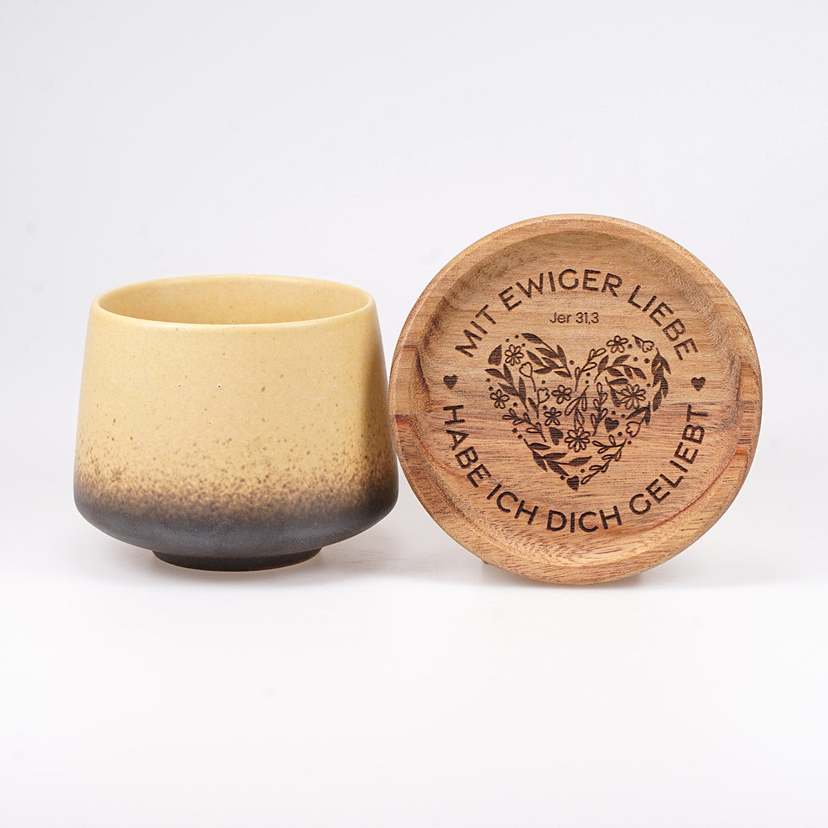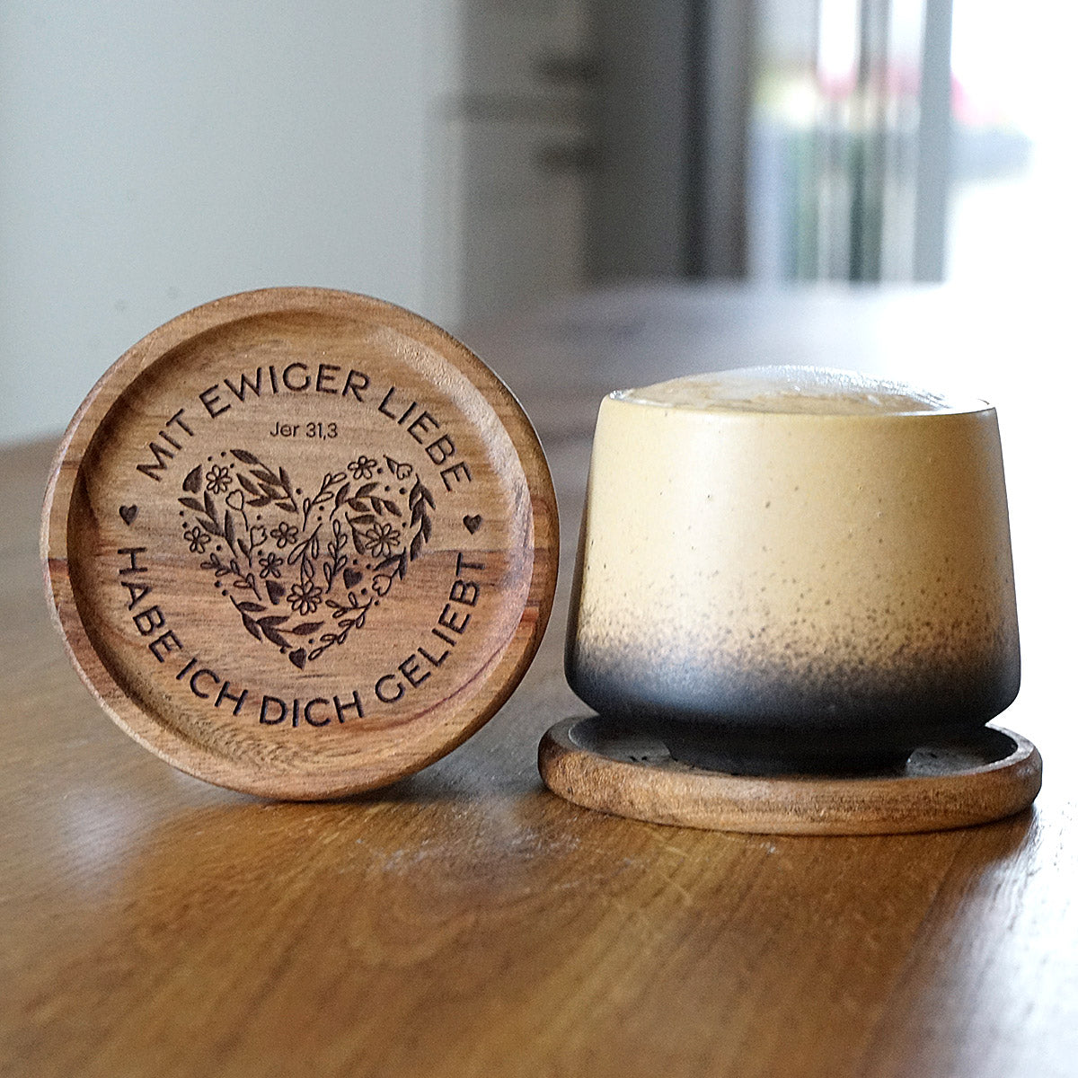 Starte deinen Tag oder gönnen dir eine wohlverdiente Pause mit unserer einzigartigen Kaffeetasse mit graviertem Holzuntersetzer. Dieses Set verbindet zeitlose Ästhetik mit einer tiefen, geistlichen Botschaft und ist das perfekte Geschenk für liebe Menschen oder eine Bereicherung für Ihr eigenes Zuhause.