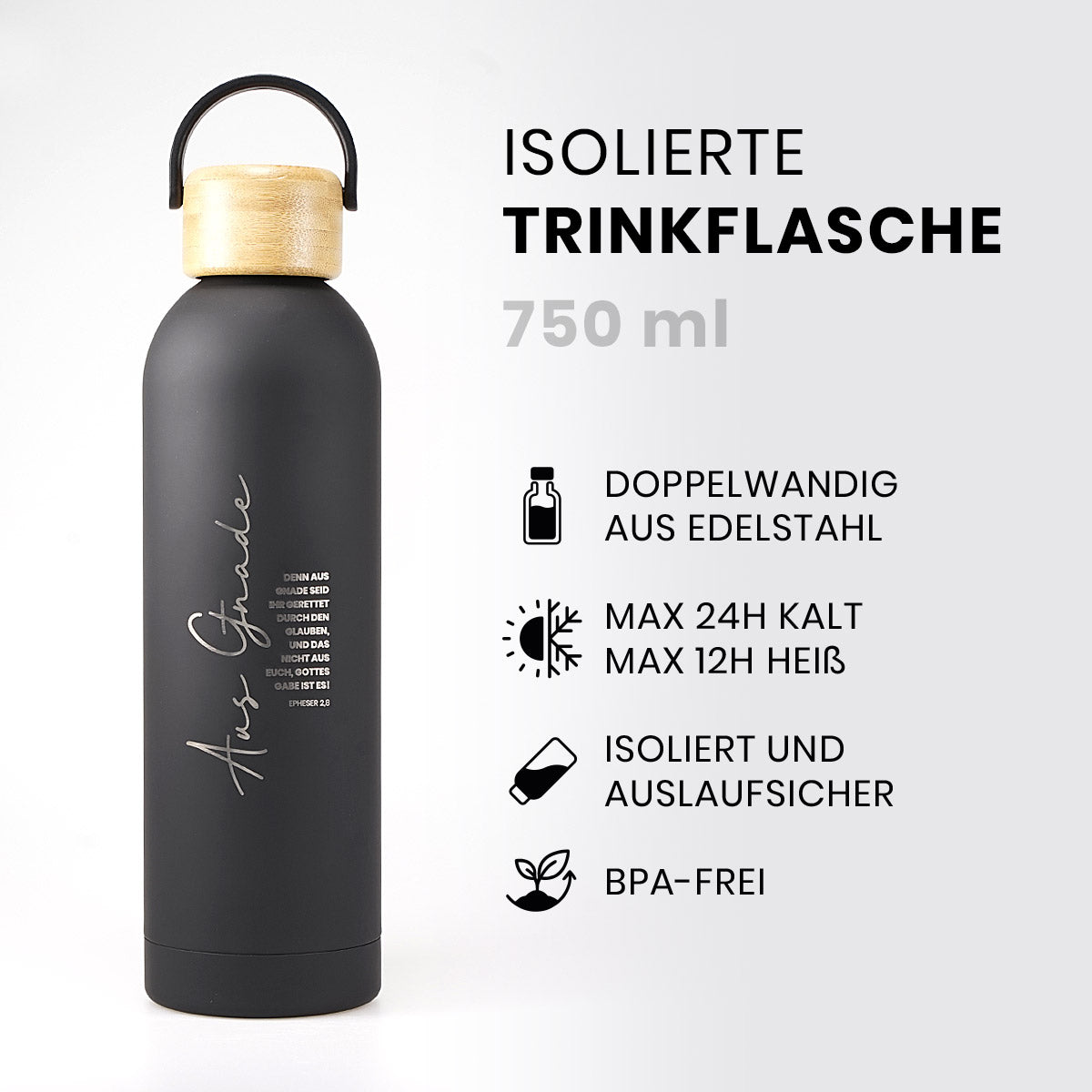 Isolierte Trinkflasche "Aus Gnade" · 750 ml · Gravur · Epheser 2,8