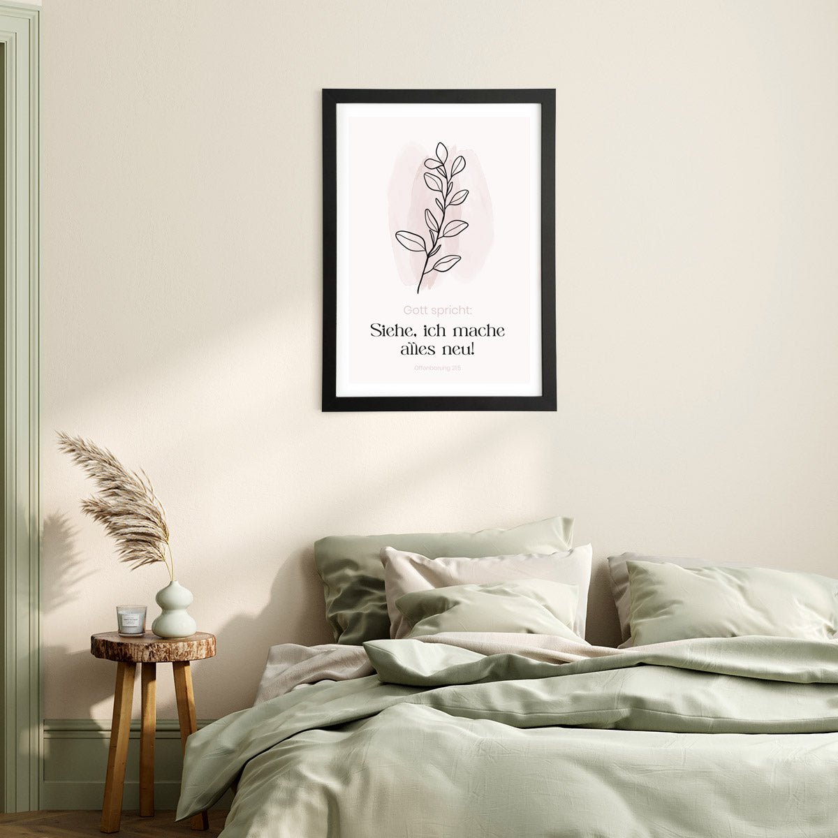 Modernes Pflanzen-Design mit dem begleitenden Bibelvers, der für die Jahreslosung 2026 gewählt wurde.